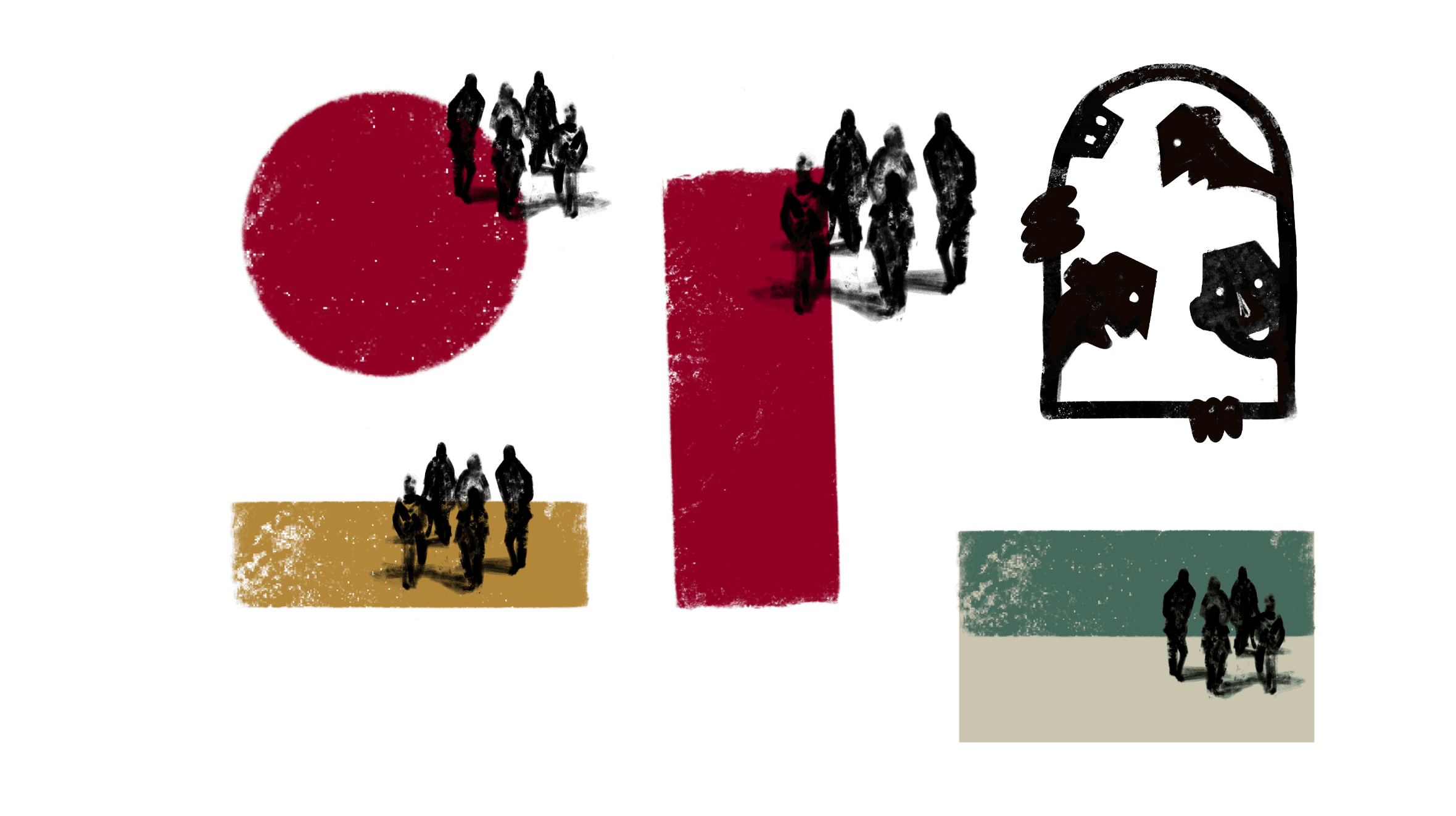 A window suggests side conversations, bedsheets speak of closeness, of stories shared in hushed tones.