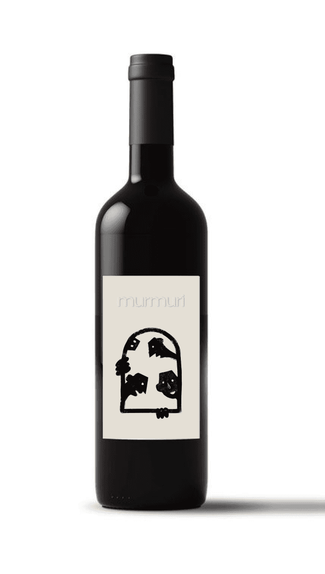 The composition of the label is minimalist and evocative: a delicate illustration shows a group of isolated people, immersed in their own dialogue, whispering among themselves. The title Murmuri is embossed, a detail that reinforces the idea of the whisper, a discreet, subtle presence, that does not seek to draw attention, but is there.