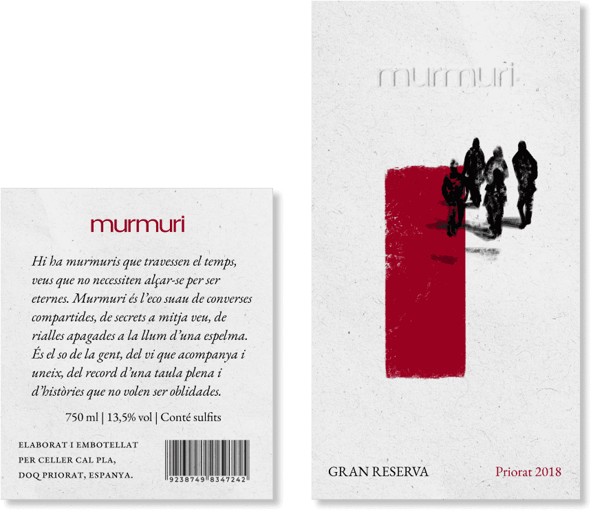 Inspired by the whisper of the people, this project seeks to capture the essence of Priorat in a subtle but deep way. ‘Murmuri’ is the whisper of the people, of the wine that accompanies and unites, of the memory of a full table and of stories that do not want to be forgot.